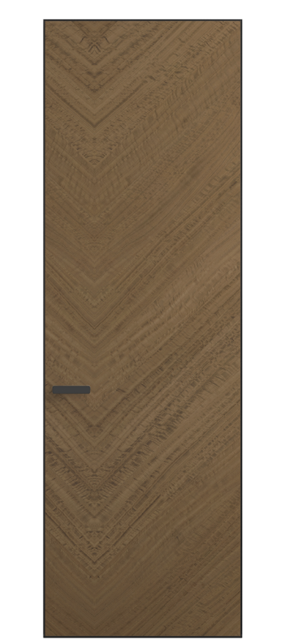 Полотно Rift в скрытом алюминиевом коробе становится полноценным элементом декора. В коллекции представлено 9 моделей дверей в высоте до 3 метров. Рисунок раскладки шпона варьируется от простого до сложного. «Рубашка» для каждого полотна подбирается вручную по цвету, текстуре и фактуре.